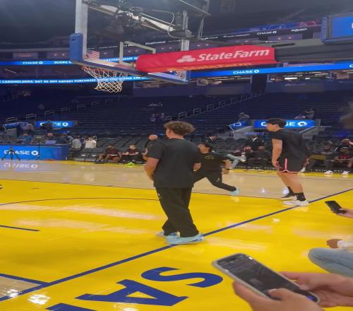 开拓者队记发杨瀚森赛前扣篮视频并配中文:把它扔下来大个子