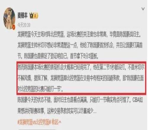 CBA球员回避条款,周琦不打新疆,陈国豪限制出场时间
